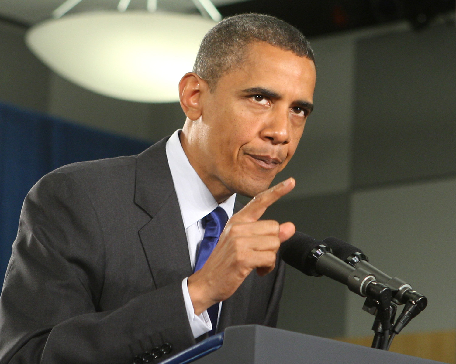 President Barack Obama speaks in the student union at the University of Nevada, Las Vegas, on Friday as part of a two-day swing in Las Vegas to help Sen. Harry Reid in his re-election campaign. During his visit, Obama talked about his efforts to help revive the economy. He called on Congress to act on a proposal for a $5 billion expansion of the Section 48c Advanced Energy Manufacturing Tax Credit.
