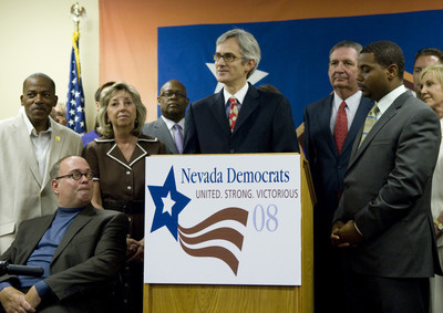 Reid was joined by state Sen. Steven Horsford of Las Vegas, an Obama campaign leader, and other Democrats, including Clinton supporters such as former Gov. Bob Miller and state Sen. Dina Titus, a candidate for Congress.