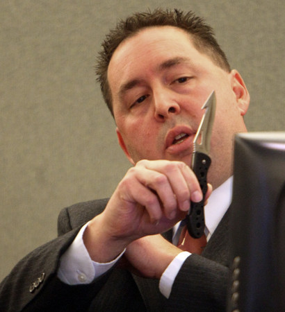"I thought for certain that he was either going to stab her in the neck or slash her throat," Colling testified.