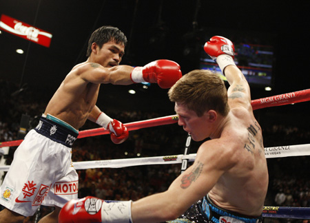 Coming off an overwhelming win over Oscar De La Hoya, Pacquiao was even better against Hatton, knocking him down two times in the first round before finally stopping him with a vicious left hand that dropped Hatton for good in the 140-pound title bout.