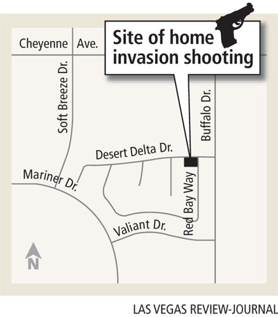 About 9:30 p.m. Thursday, police received a report that two residents at 3025 Red Bay Way, near Cheyenne Avenue and Buffalo Drive, had shot and killed a man trying to rob their house, homicide Lt. Lew Roberts said.