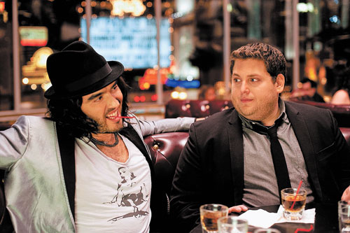 There's a new Vegas movie in theaters today. In "Get Him to the Greek," Jonah Hill portrays a music company lackey, escorting a rock star (Russell Brand) from London to Vegas to L.A.