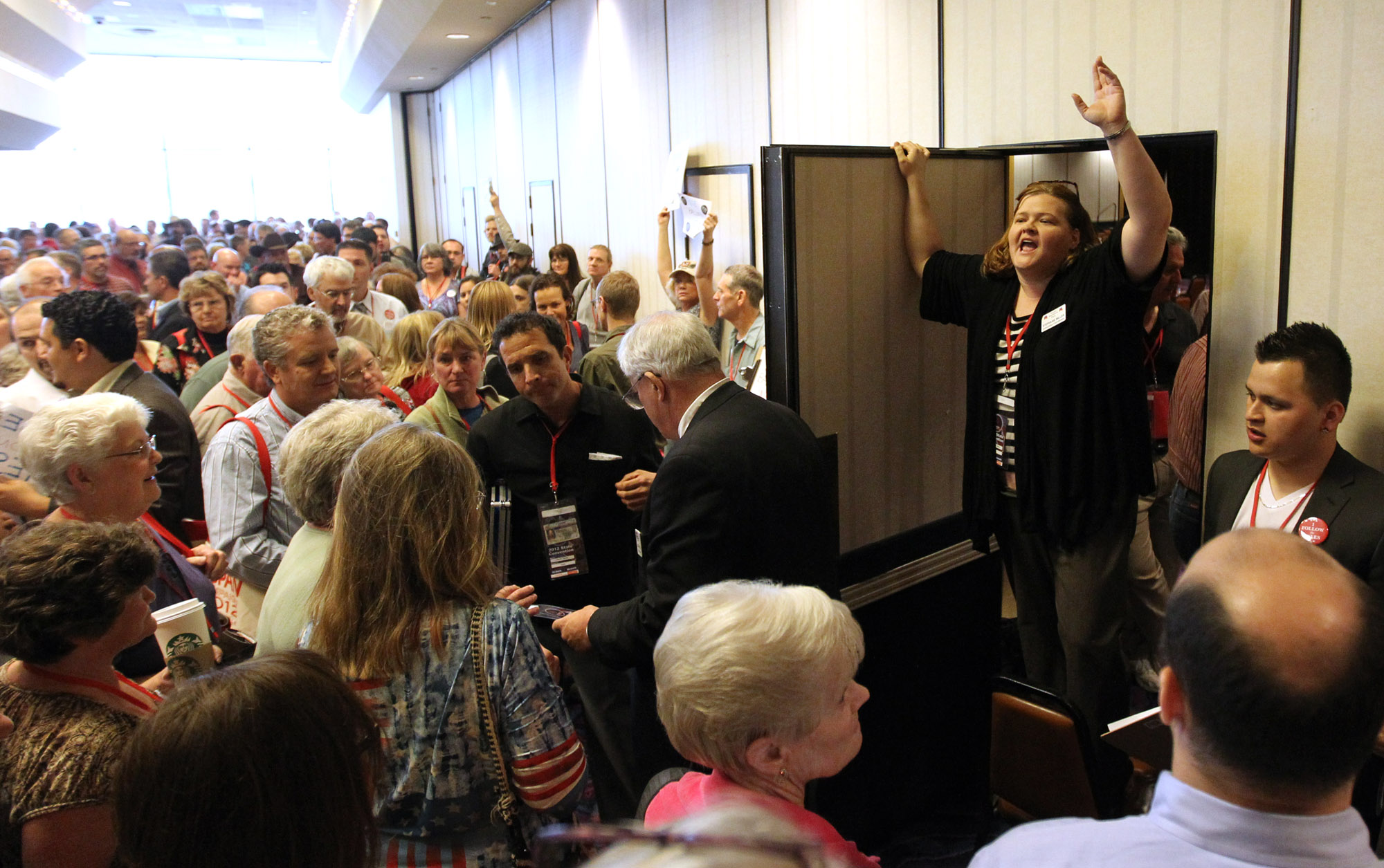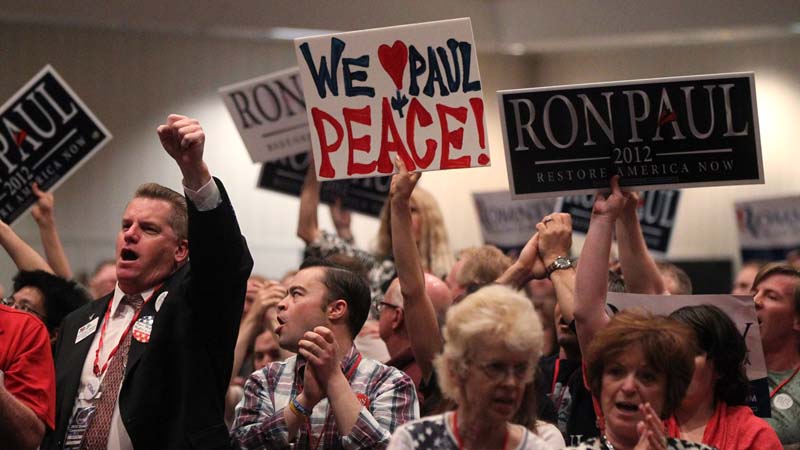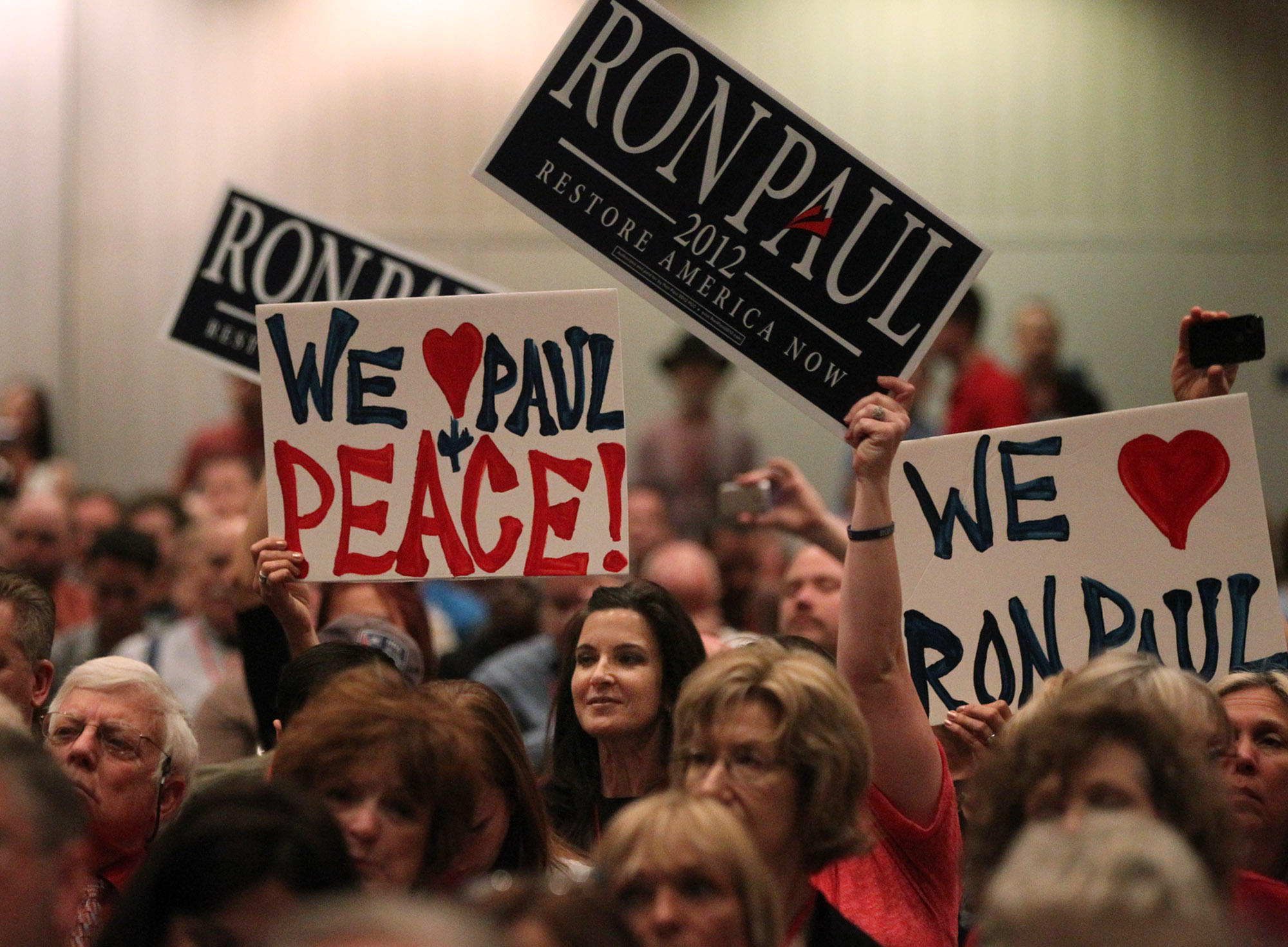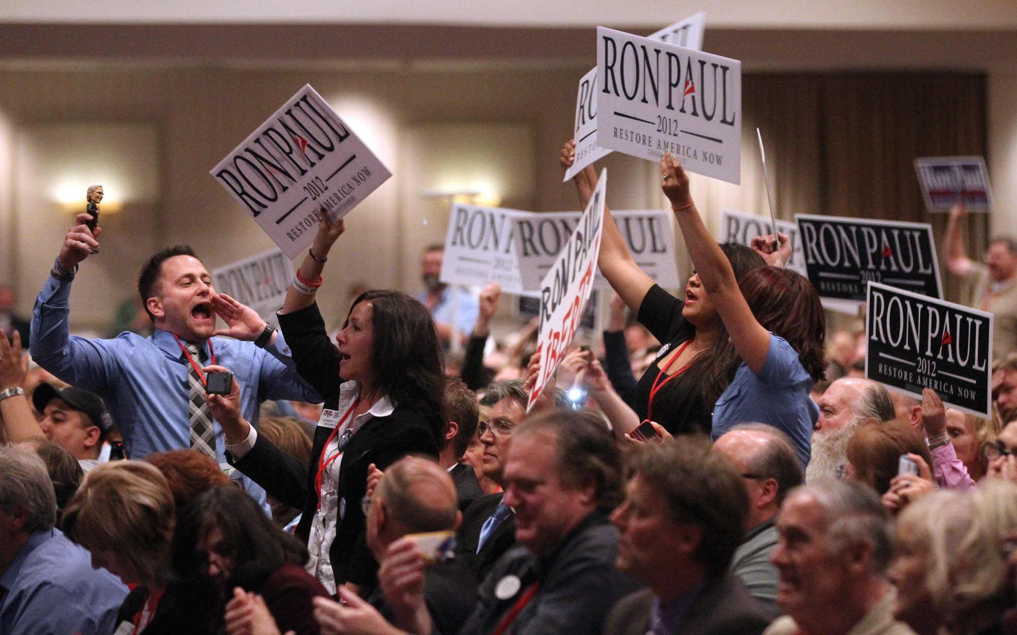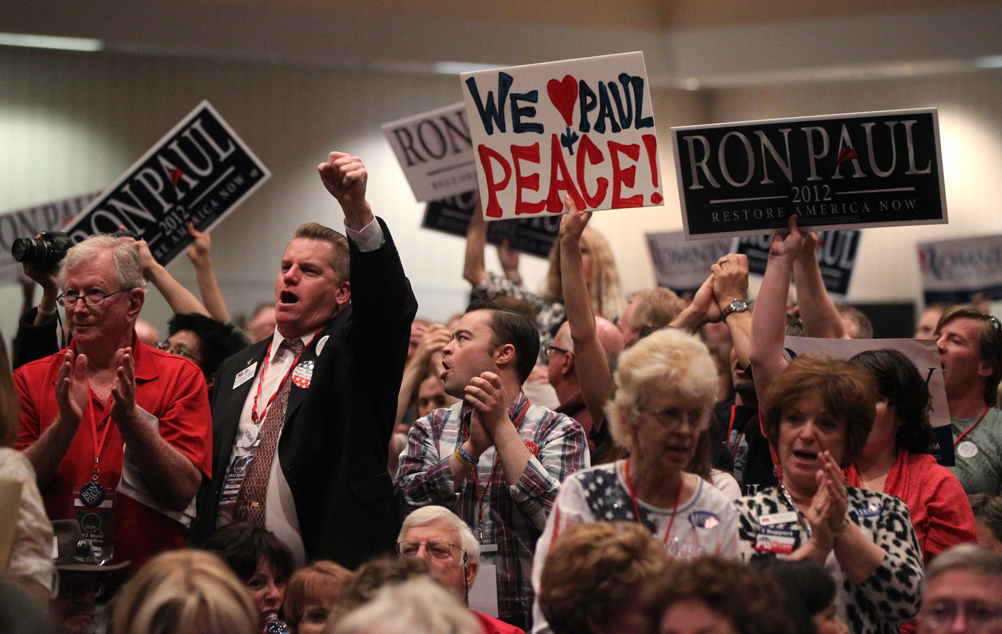Presidential candidate Ron Paul rallied supporters during the Nevada Republican Party Convention at John Ascuaga's Nugget in Sparks on Saturday, May 5, 2012. Paul has vowed to stay in the race through the Republican National Convention in Tampa Aug. 27-30 as his supporters in Nevada and other states work to elect delegates so he has more influence and could even be nominated from the floor.