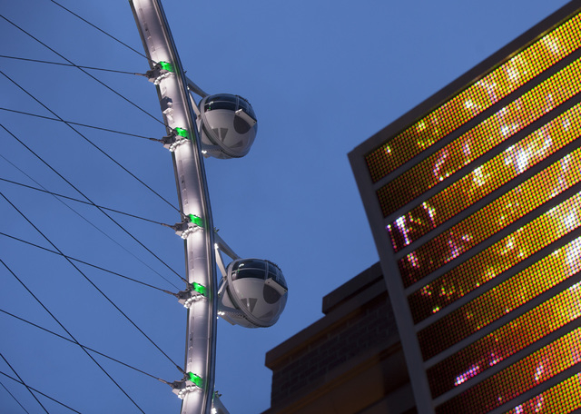 The Las Vegas High Roller could be seen over the Strip during its inaugural lighting on Friday night. The world’s largest observation wheel is the centerpiece of the $550 million Linq.