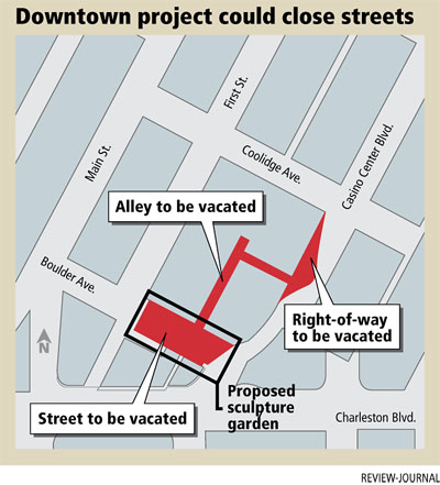 Those buildings would center on the sculpture plaza, which is planned to take up all of Boulder Avenue between Main Street and Casino Center. To speed development along — and to mesh his plans with ongoing road work on Casino Center — Isbutt asked the city to vacate about half of that area, meaning that Boulder Avenue from First Street to Casino Center would become private property.