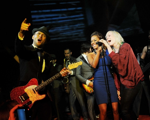 For Goss' opening Friday, Spice Girl Mel B showed up with half her head shaved. (See photos on my blog.) Mel B, Natasha Bedingfield and Leona Lewis joined Goss for the finale.