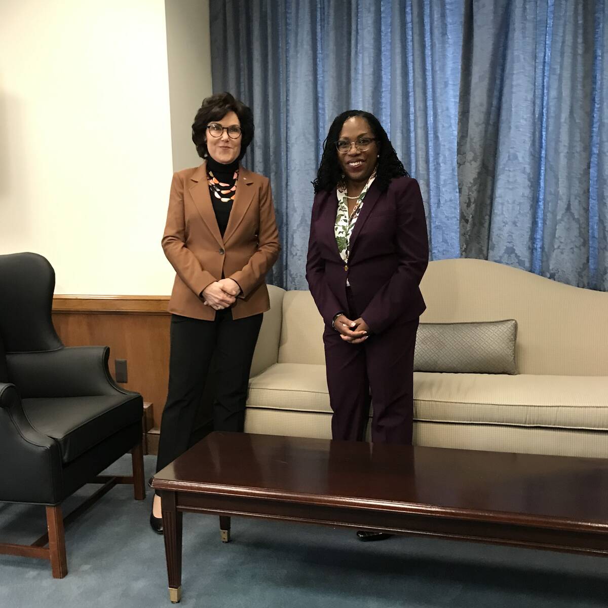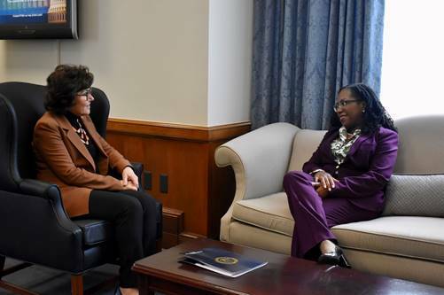 As Senate leaders prepared for her confirmation vote, now assured with three Republican votes, Jackson continued to meet with senators who will vote on her confirmation.