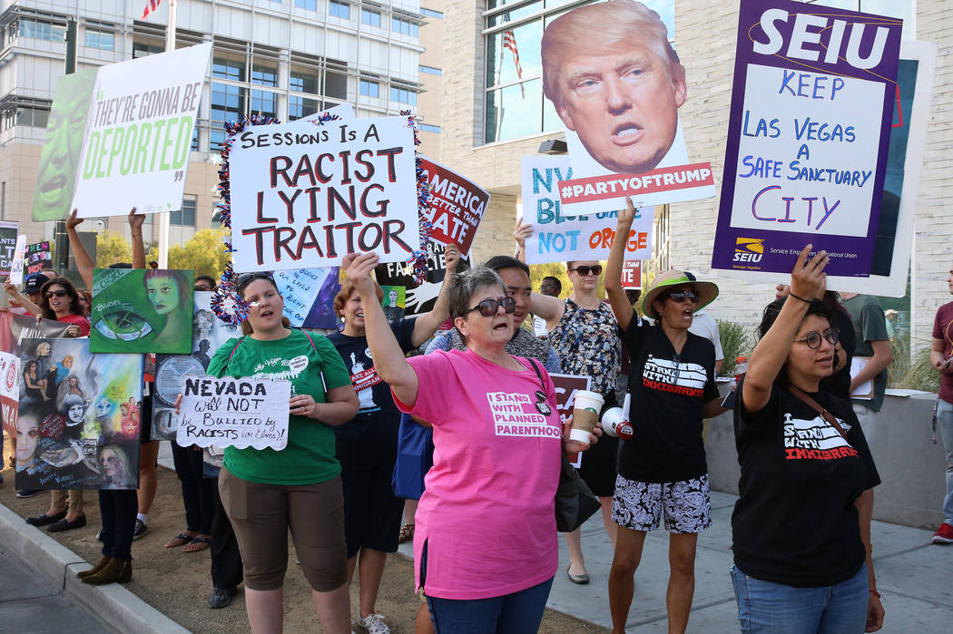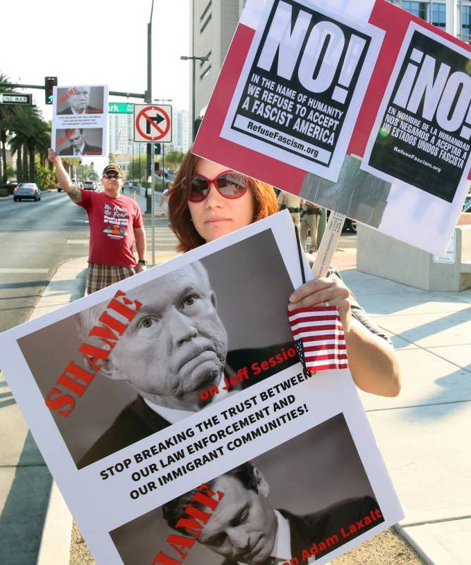 “I worry that some of the steps that Jeff Sessions, supported by (Nevada Attorney General) Adam Laxalt, are taking will lead to Trump’s federal agents just marching into Nevada, violating the Constitution, and just arresting anybody they presume to be foreign-born,” said Laura Martin, a protester who works for the Progressive Leadership Alliance of Nevada.
