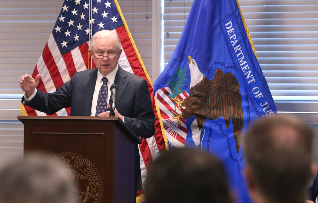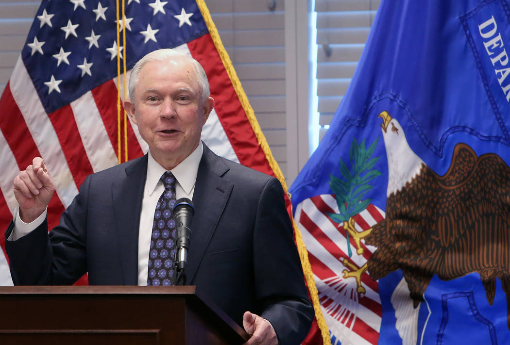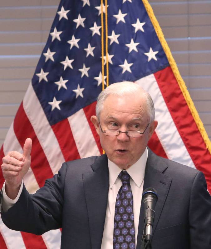 U.S. Attorney General Jeff Sessions championed a tough-on-crime stance during a speech Wednesday in Las Vegas in which he called for harsher prosecution of criminals and cooperation from local authorities as the federal government cracks down on illegal immigration.