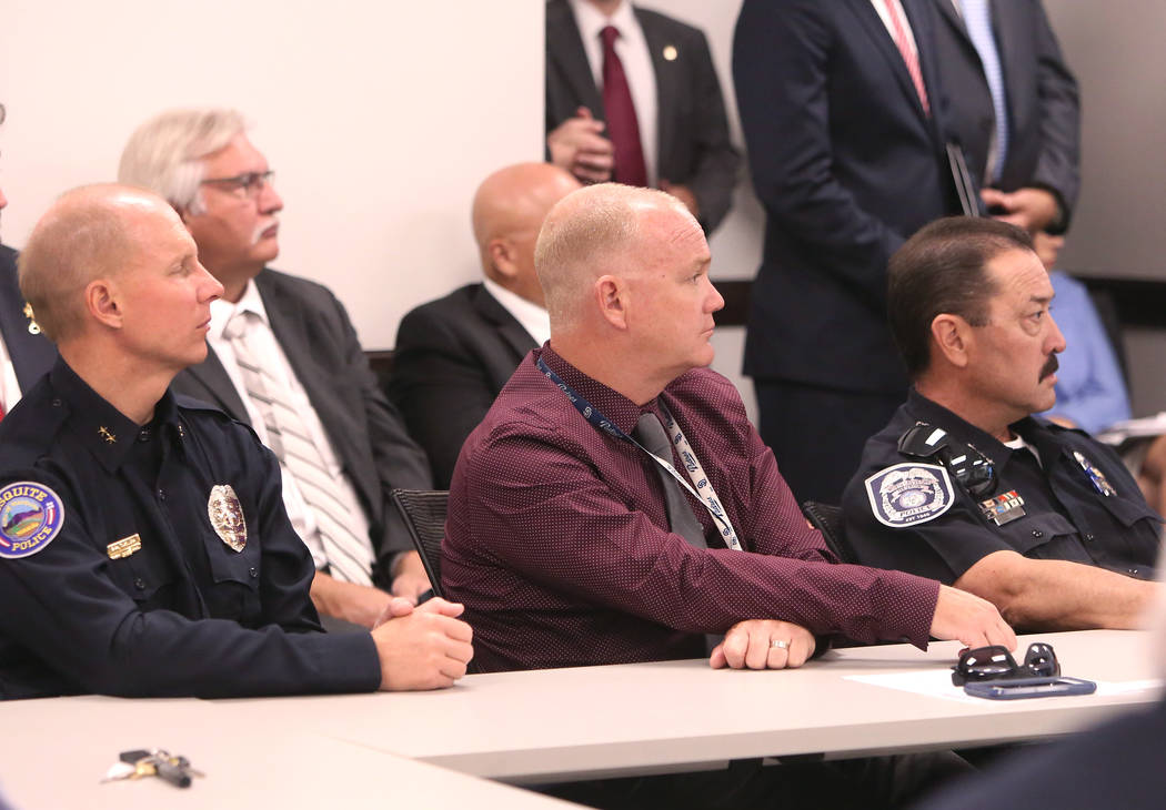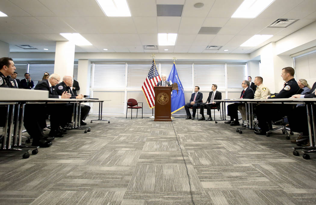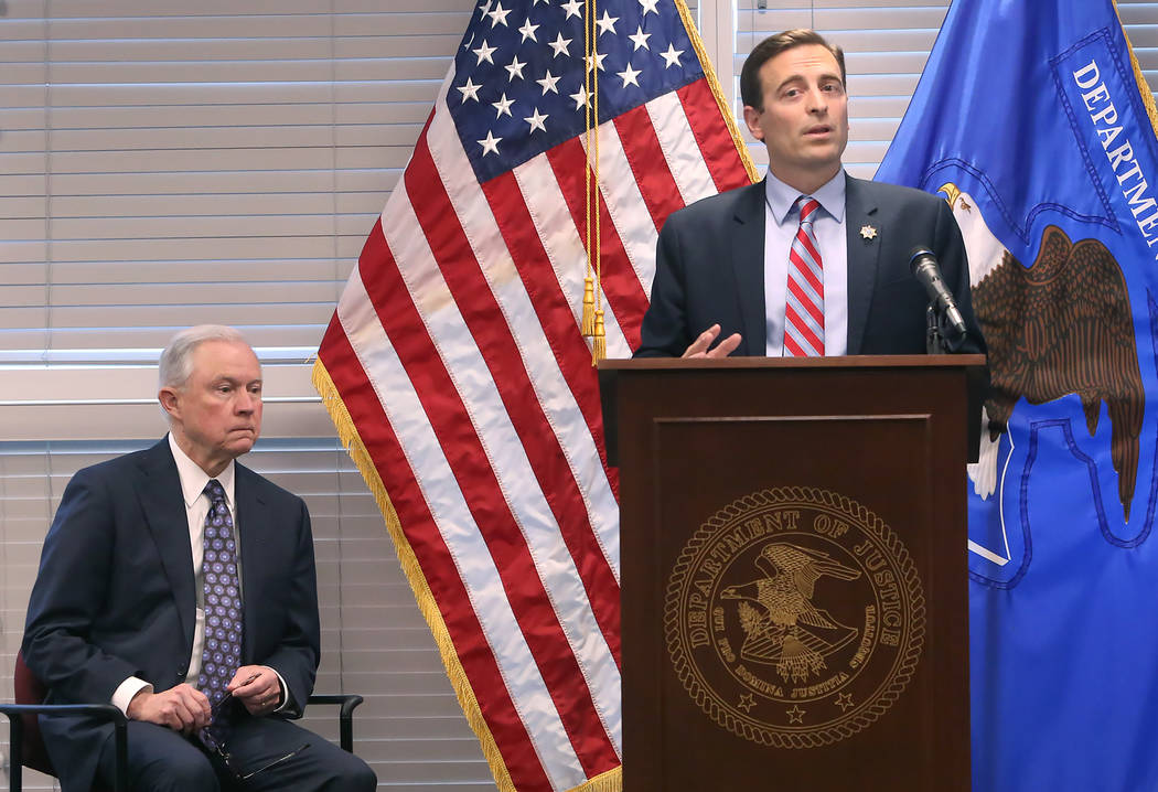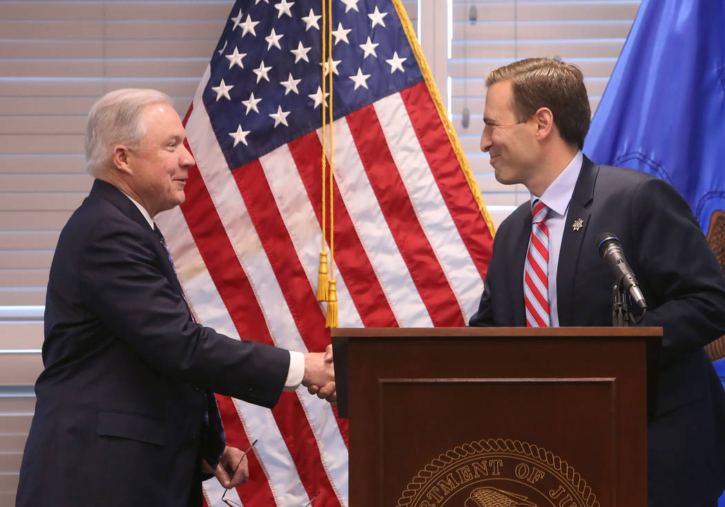 Sessions gave his morning remarks to dozens of uniformed police officers, who gathered at the downtown office of Acting U.S. Attorney Steven Myhre to listen to the top law enforcement officer in America.