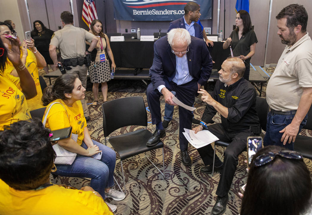 “I think what people have got to do in Nevada is take a hard look at the individual candidates and what they stand for,” Sanders said.