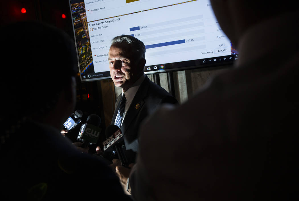 By about 10:25 p.m., Lombardo had nearly 73 percent of the votes cast in a crowded race for sheriff. He needed more than 50 percent to win the election outright in the primary.