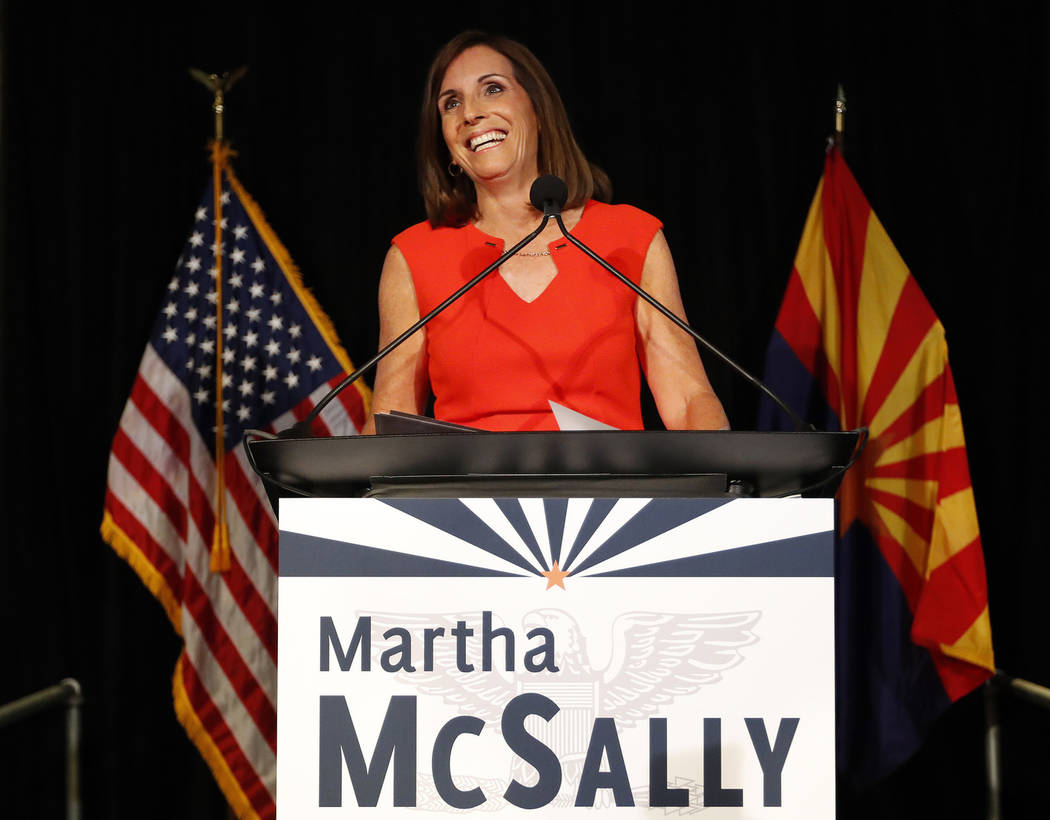 Rep. Martha McSally represents a moderate Arizona district and was a Trump critic in 2016, but she has since warmly embraced him and won her party’s Senate nomination. She defeated two challengers from her right in the Republican primary Tuesday, but may emerge with less than half of GOP primary voters supporting her after being slammed as a flip-flopper by opponents.