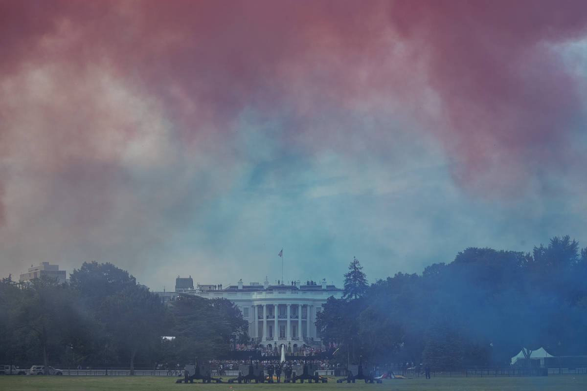 But the crowds wandering the National Mall for the night’s air show and fireworks were strikingly thinner those the gathering for last year’s jammed celebration on the Mall.