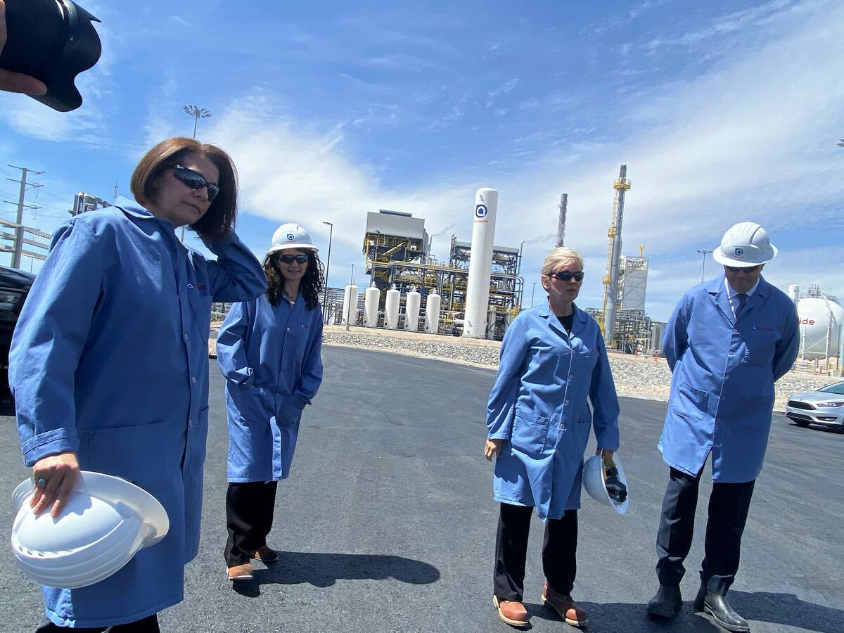 Granholm was in the Silver State with members of Nevada’s federal delegation for a trio of energy-focused tours that included the NV Energy Beltway Center Complex to highlight energy grid modernization, a tour of a weatherized home in Spring Valley and a look at the under-construction Air Liquide in North Las Vegas, a $250 million liquid hydrogen plant that is expected to open as early as this month and eventually produce enough fuel to supply 40,000 vehicles running on hydrogen fuel cells each day.