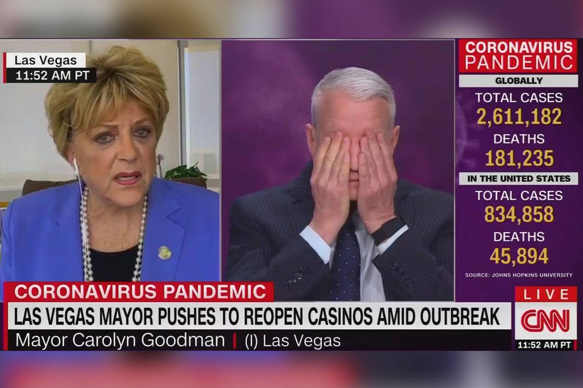Las Vegas Mayor Carolyn Goodman repeated her call to immediately reopen businesses during an interview with CNN’s Anderson Cooper on Wednesday, stunning the anchor at times only a day after she told NBC’s Katy Tur that competition would stamp out the businesses that had coronavirus outbreaks.