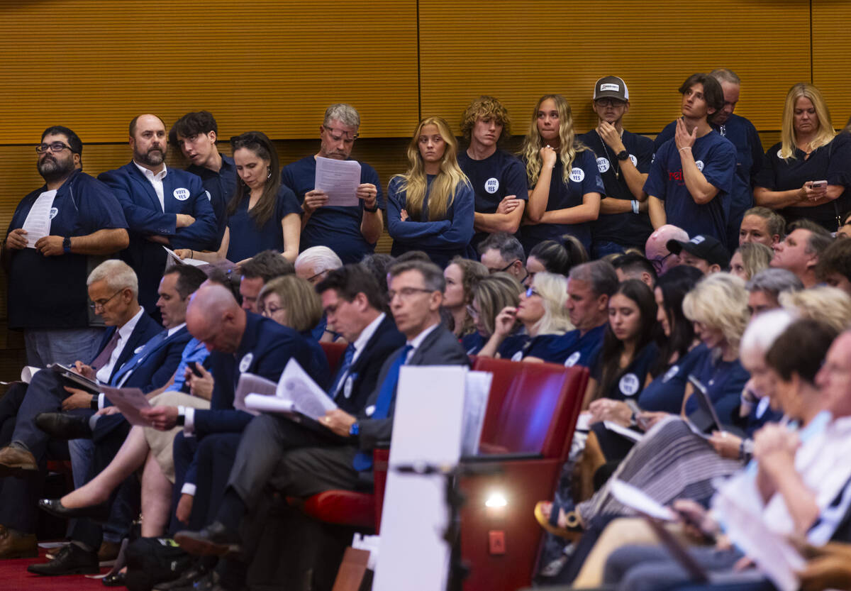 Hundreds of community members crowded into the council chambers in downtown Las Vegas for the more than six-hour meeting, filling the space to maximum capacity. More gathered outside city hall and in an overflow room.