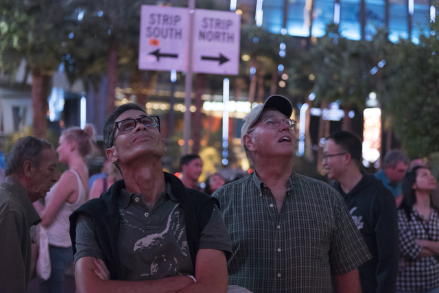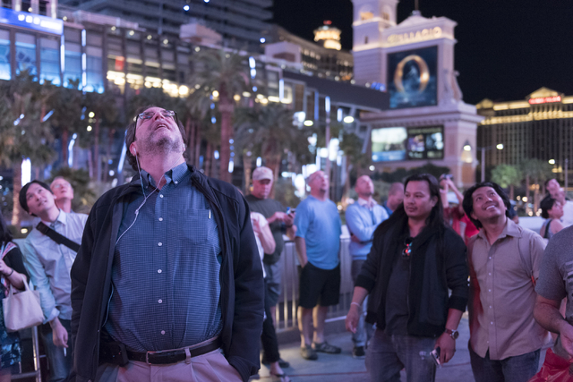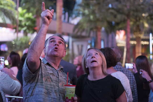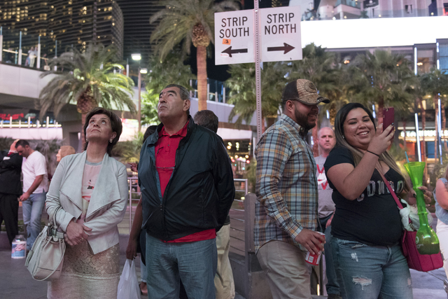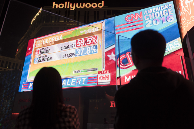 People watch CNN’s live coverage of the presidential election on the screens outside of the Miracle Mile Shops at Planet Hollywood hotel-casino in Las Vegas, Tuesday, Nov. 8, 2016. Jason Ogulnik/Las Vegas Review-Journal