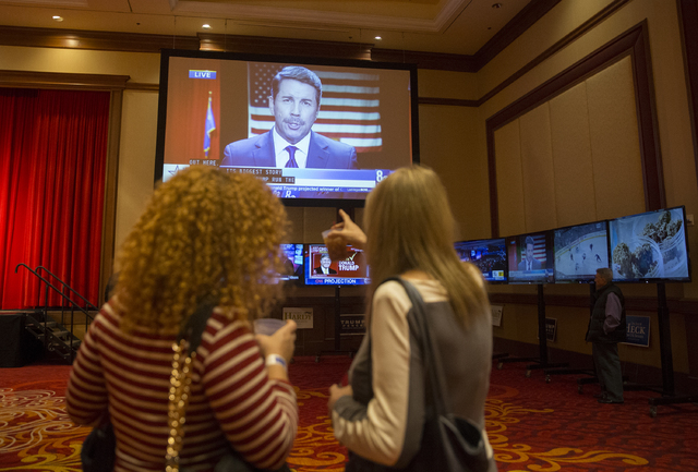 Trump supporters track results at an election night event hosted by the Nevada Republican Party at South Point hotel-casino on Tues, Nov. 8, 2016, in Las Vegas. "I’ve been inspired since he became a candidate," said Senser. Benjamin Hager/Las Vegas Review-Journal