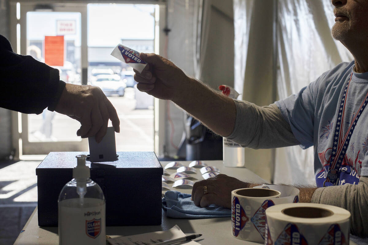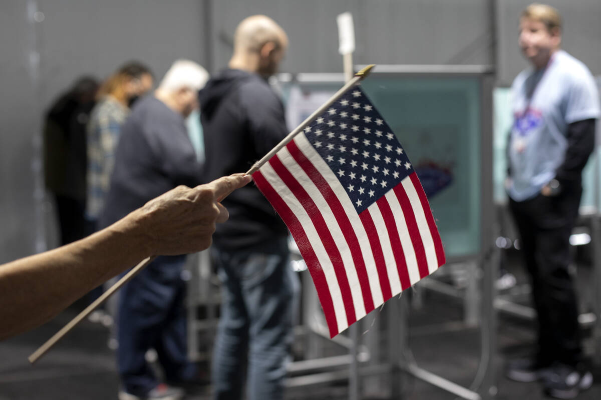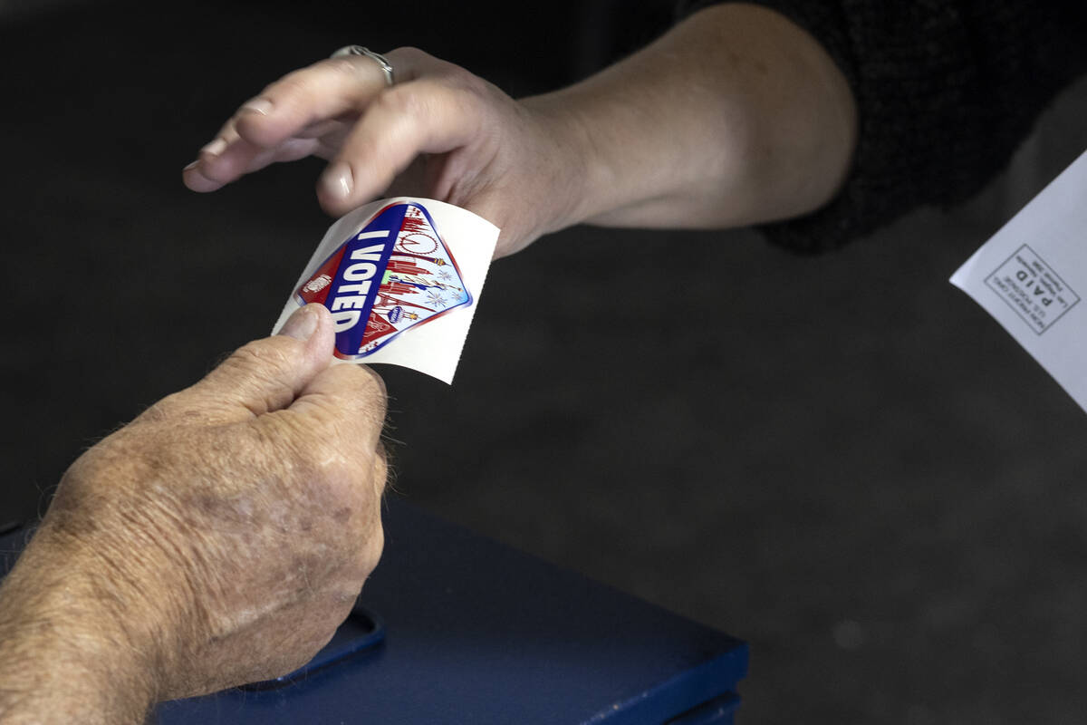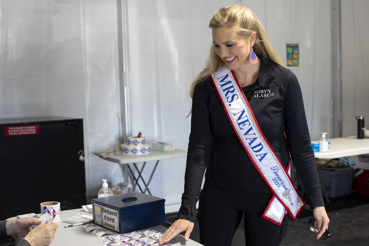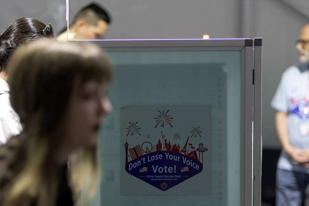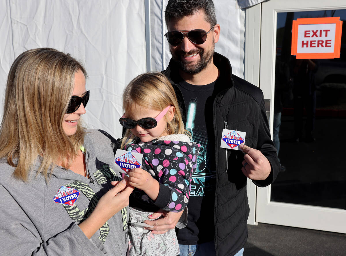 Khalaf and her husband, Rami Khalaf, proudly showed off their Las Vegas “I Voted” stickers as they walked out of the tent.