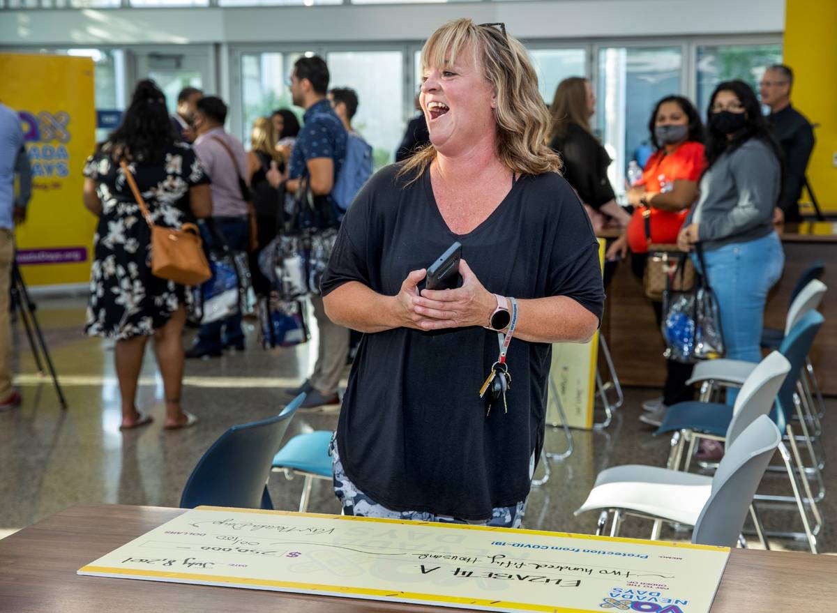 Before speaking with a reporter after the event at the College of Southern Nevada’s North Las Vegas campus, Allder said she needed to get on the phone with her husband to tell him the news. After the call, she said, “I’m in shock.” And her husband? “He’s crying.”