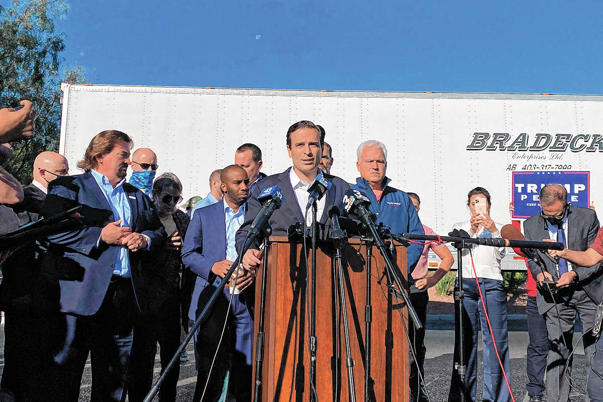 “We firmly believe that there are many voters in this group of mail-in voters that are not proper voters,” Adam Laxalt, former Nevada attorney general and co-chair of President Donald Trump’s re-election campaign in Nevada, said at the Trump news conference outside the Clark County Election Department vote center in North Las Vegas. “We have received reports of many irregularities across the valley.”