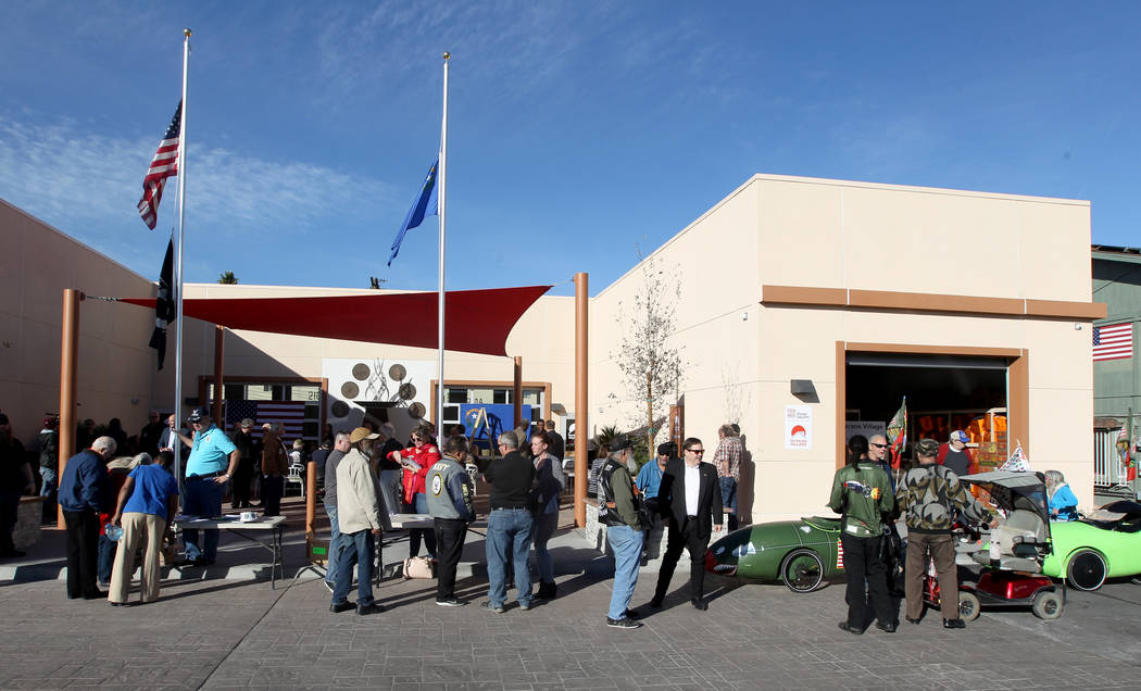 Veterans and supporters gather at Veterans Village 2 in downtown Las Vegas Wednesday, Jan. 24, 2018, to hear Republican gubernatorial candidate Nevada Attorney General Adam Laxalt. (K.M. Cannon/Las Vegas Review-Journal) @KMCannonPhoto