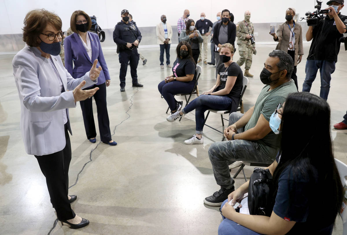 Nevada Sens. Catherine Cortez Masto and Jacky Rosen on Thursday toured the Cashman Center COVID-19 vaccination facility, where they met with local public health officials, National Guardsmen and a few Nevadans who had just received their second shots.