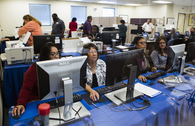 “We started today at 8 a.m.,” Clark County spokesman Dan Kulin said Monday. “We have about 25 employees working on the recount. We should be done by Friday, like we’re supposed to be,”