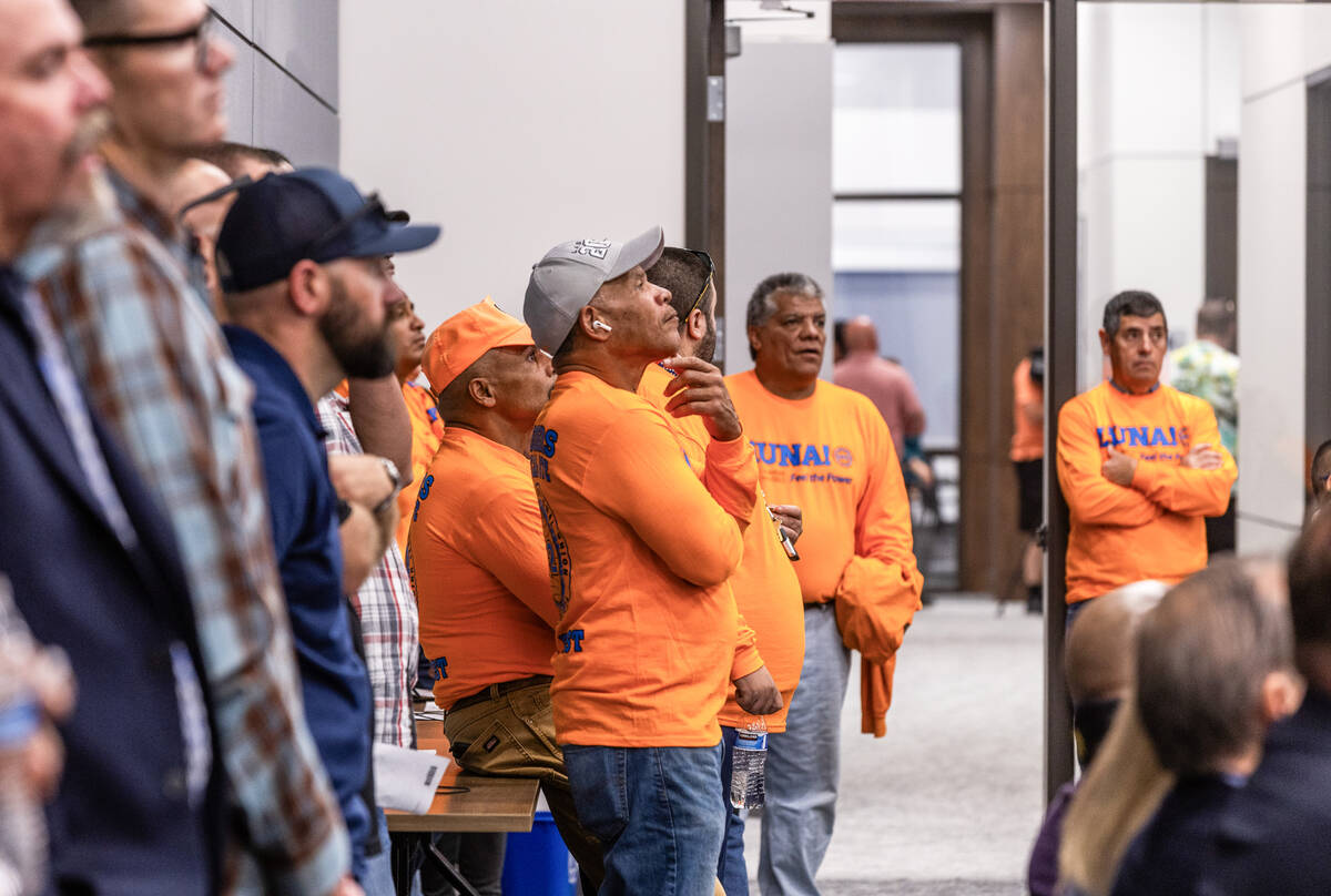 In the Las Vegas hearing room — where the hearing was videoconferenced from Carson City — union members from the construction union Laborers Local 872 wearing matching orange shirts came to shout out their support for the development project. The studio already has a project labor agreement, and Lange emphasized her support for unions throughout the hearing.