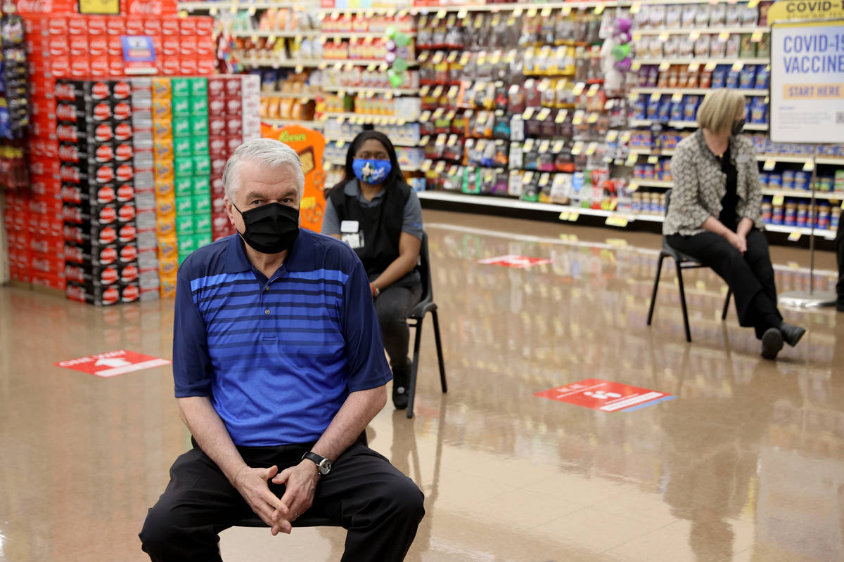 In front of a wall of snacks and stacks of soda, Gov. Steve Sisolak received his COVID-19 vaccine Thursday in a southeast Las Vegas grocery store.
