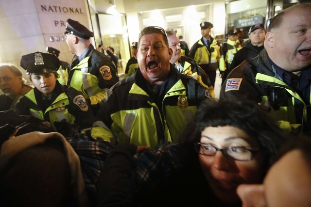 On Thursday night, protesters and supporters of Trump clashed outside a pro-Trump event in Washington called the “DeploraBall.” Police used chemical spray on some protesters in an effort to control the unruly crowd.