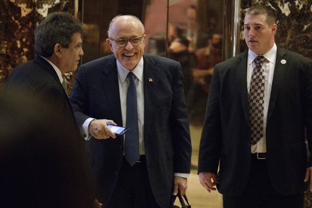 NEW YORK — Sequestered in his Manhattan high-rise, Donald Trump huddled Tuesday with Vice President-elect Mike Pence as he moved closer to filling out his Cabinet, including top national security posts. Former New York Mayor Rudy Giuliani has emerged as the favorite to serve as secretary of state, a senior Trump official said.