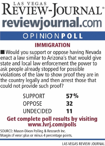 A majority of Nevadans would welcome an Arizona-style law to crack down on illegal immigrants, according to a new poll commissioned by the Review-Journal.