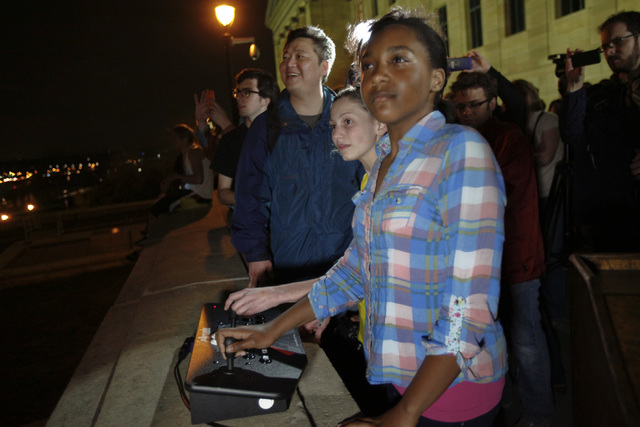 The building essentially became a 60,000-square-foot screen as hundreds of embedded LED lights replicated the familiar ball and paddles, which were controlled by a joystick about a mile away.