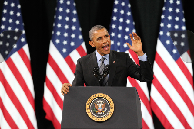 Obama chides GOP Congress, heckler ousted in Vegas speech