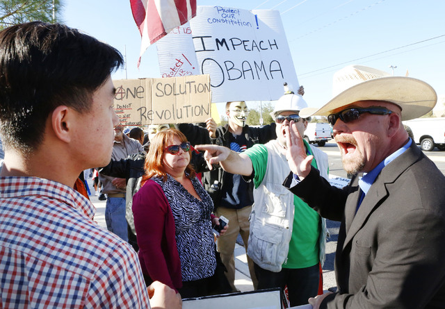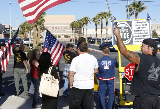 Dozens of protesters stood across the street from Del Sol High School on Friday, shouting slogans about immigration and other topics as hundreds of students lined up to get into the gym where Pres. Barack Obama would be speaking about his immigration reform plan.
