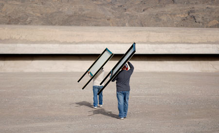 The range these men used had 60 targets with a bullet-stopping berm behind them. Each space for shooting is equipped with a table to aid in steadying the firearms.