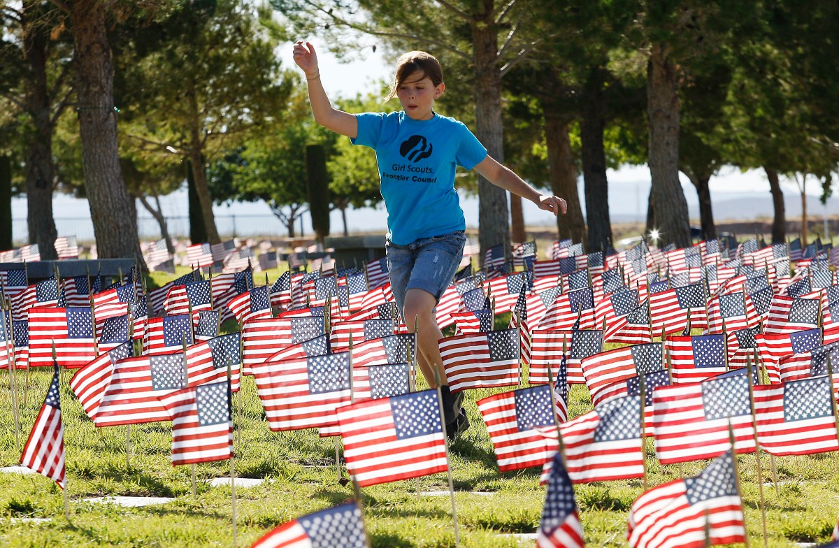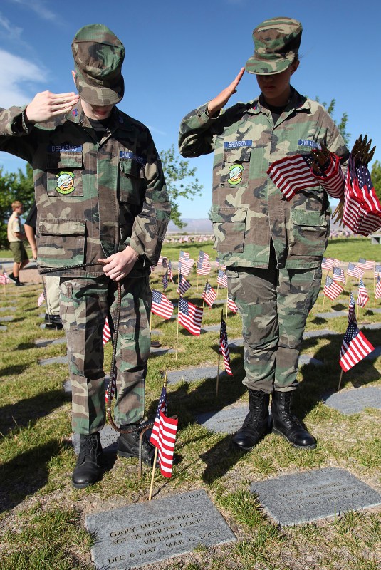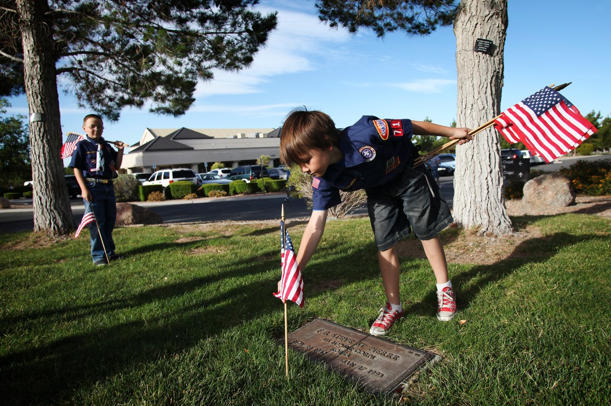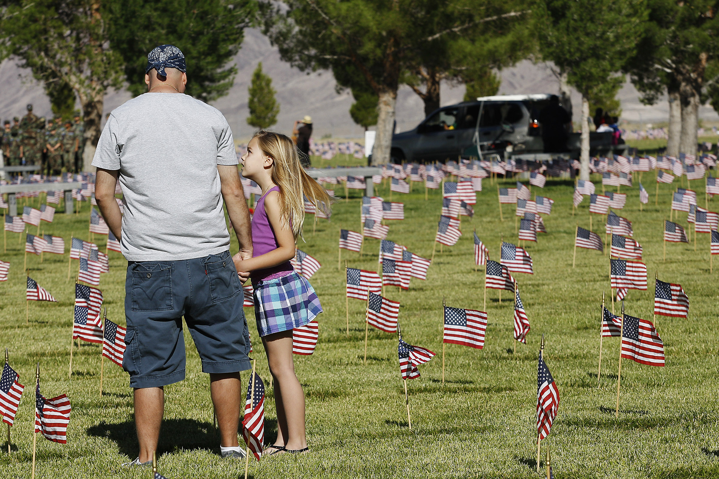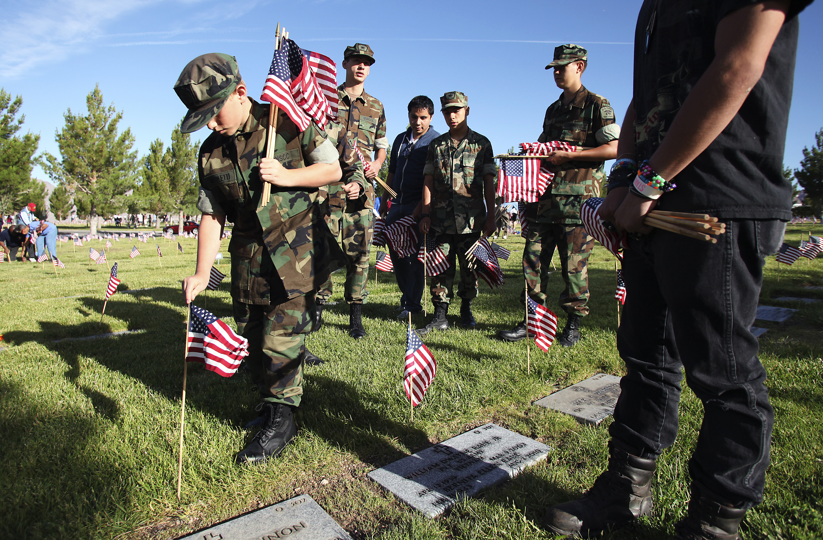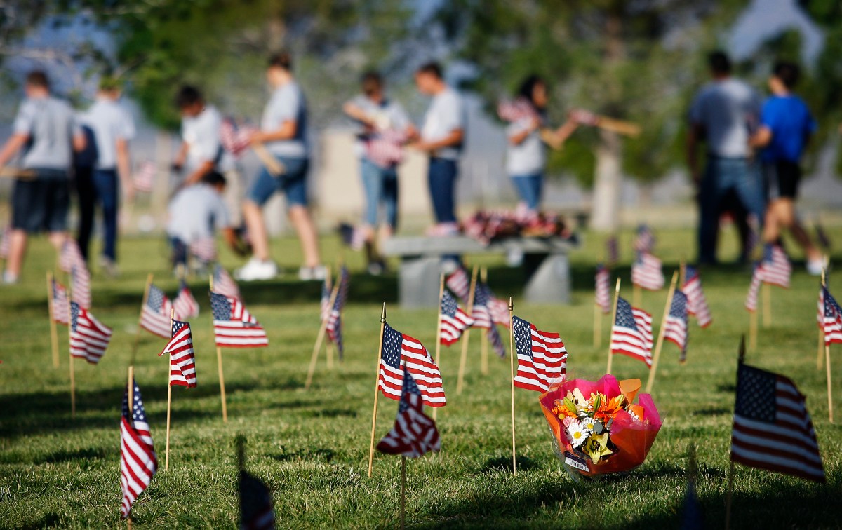 Hundreds of people placed flags at the Southern Nevada Veterans Memorial Cemetery in Boulder City on May 28, 2011.