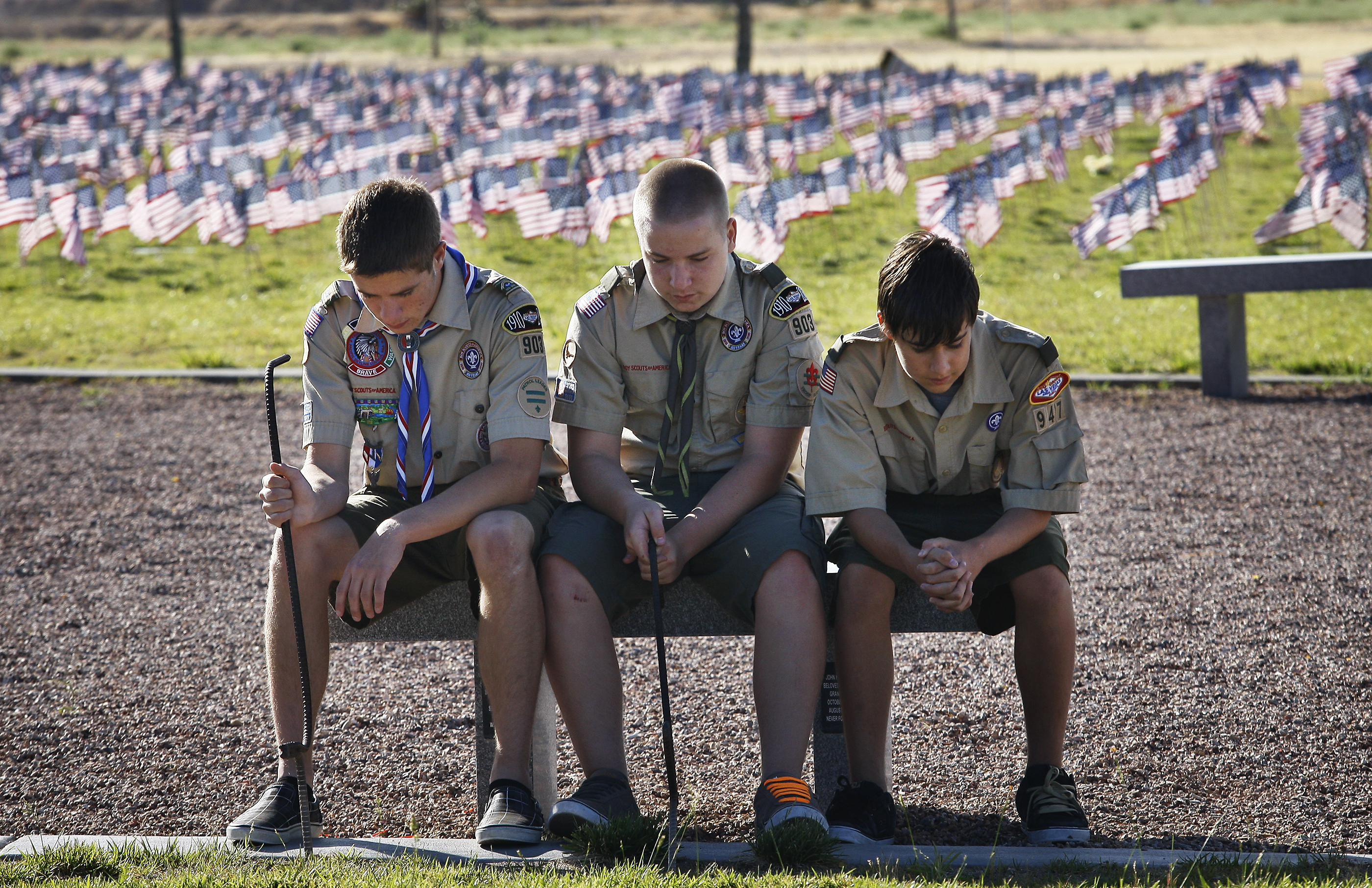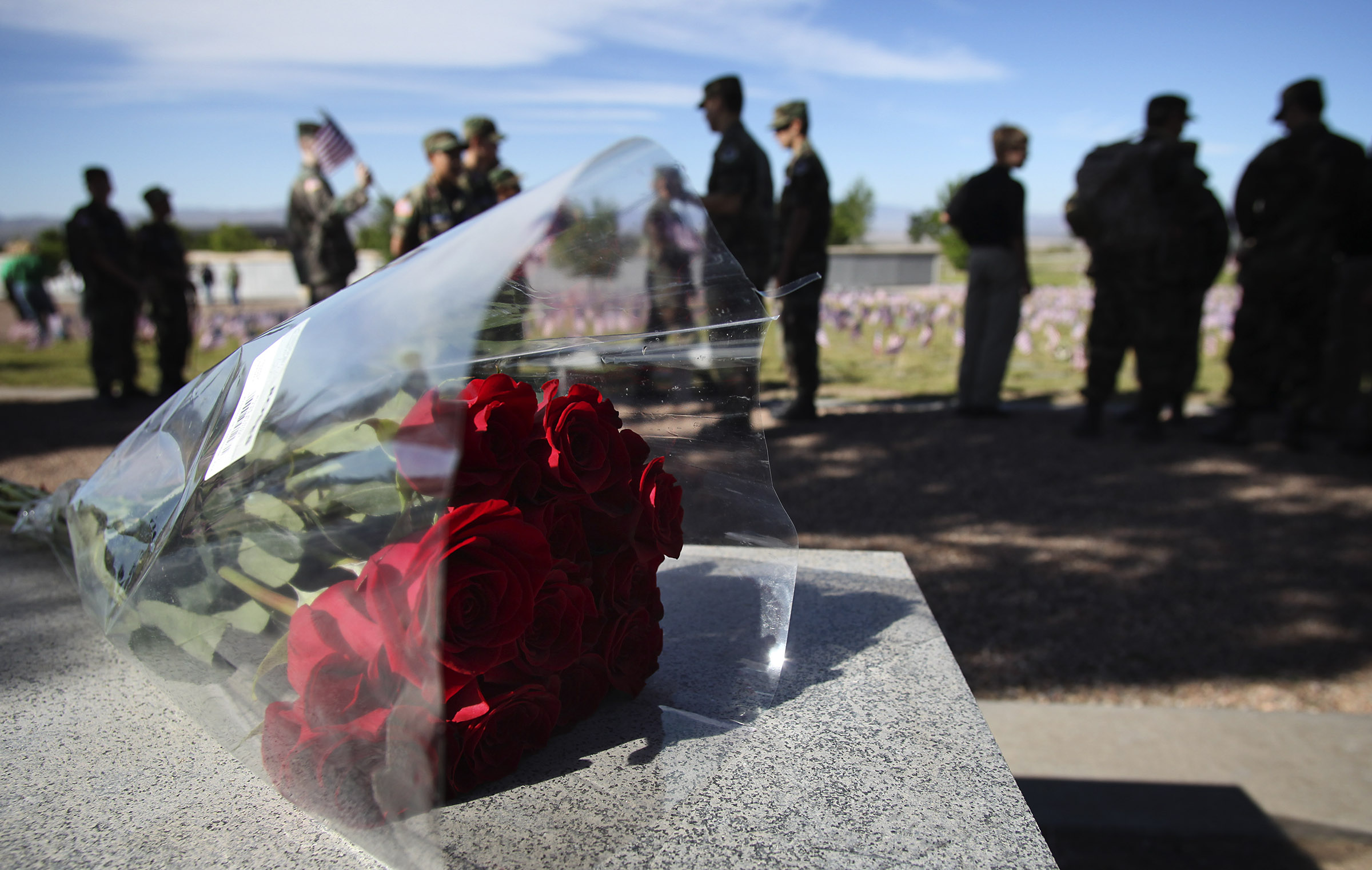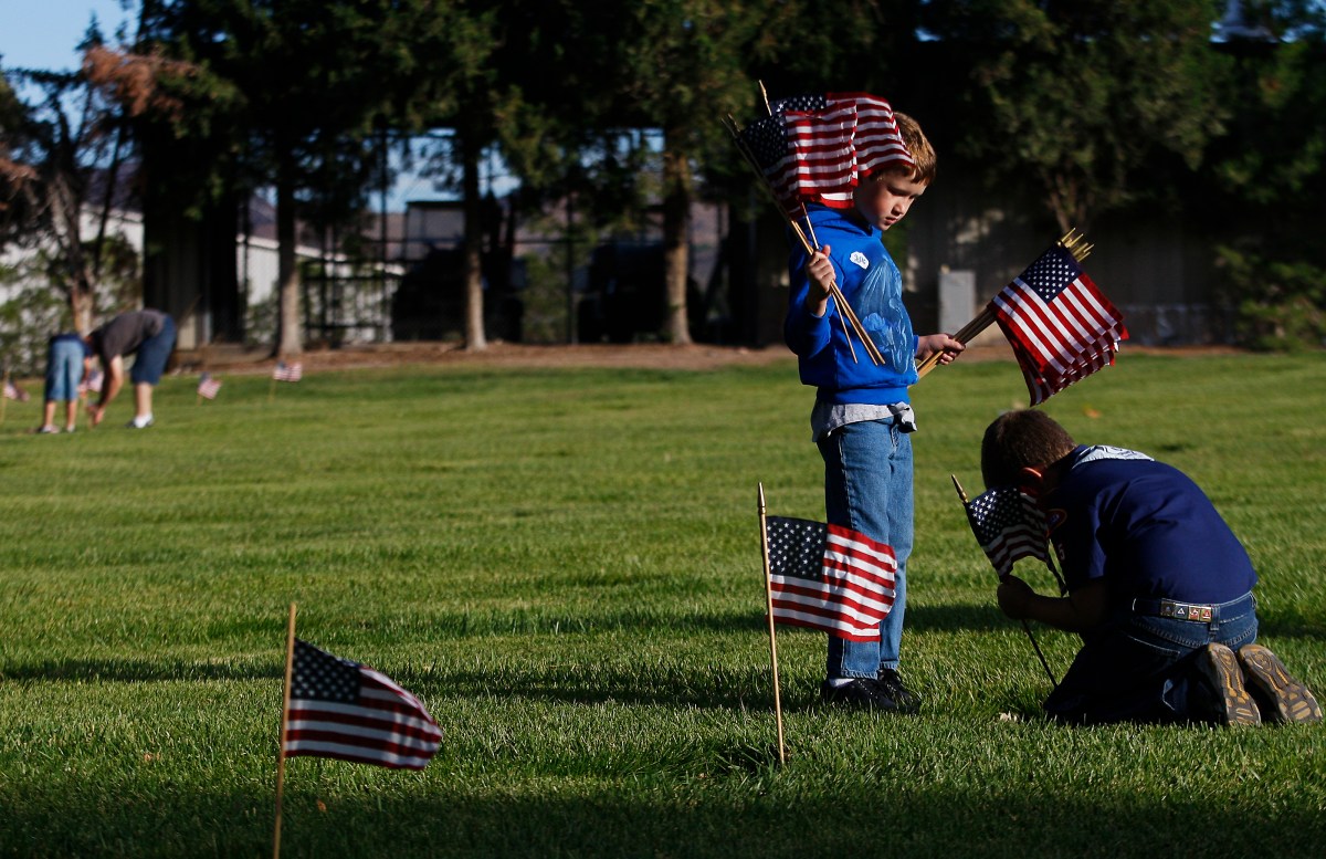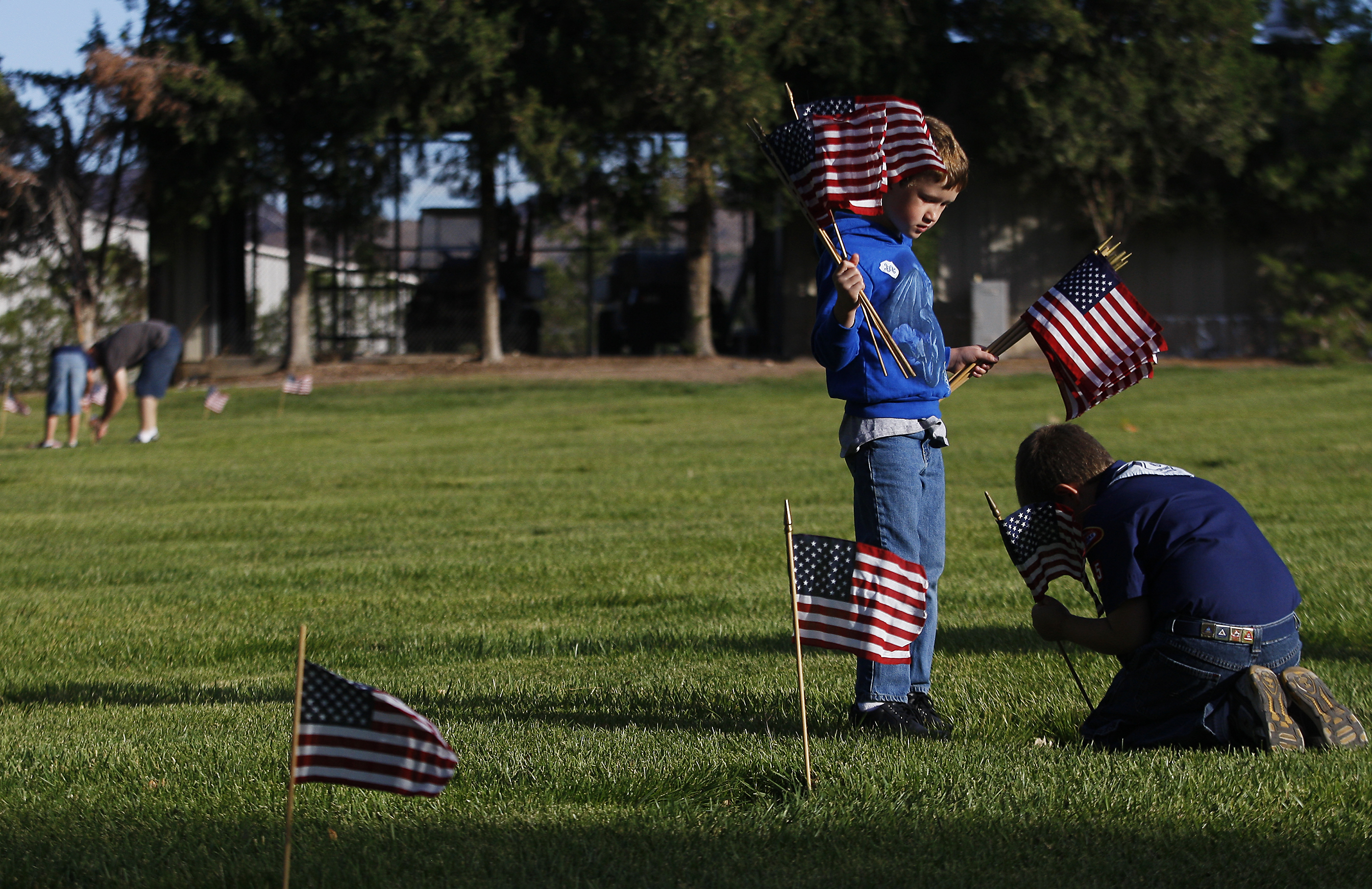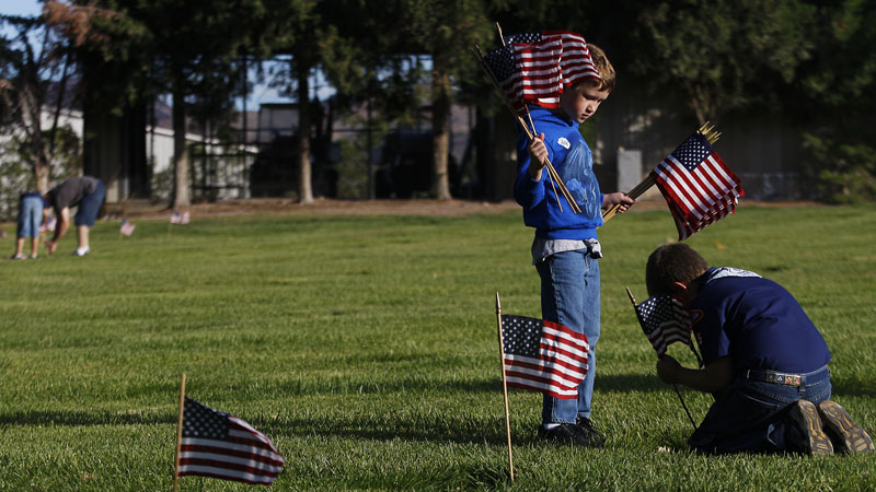 Hundreds of people placed flags at the Southern Nevada Veterans Memorial Cemetery in Boulder City on May 28, 2011.