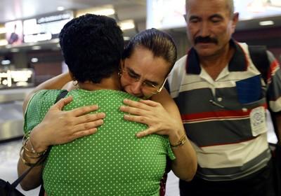De La Cruz's family arrived first. He embraced his daughter and wife and they quickly left the airport. They had no luggage.