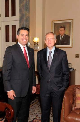 CARSON CITY -- Gov.-elect Brian Sandoval met Tuesday with Senate Majority Leader Harry Reid, D-Nev., in Washington, D.C., to discuss ways to work together to move Nevada out of the recession, according to a statement released by their offices.