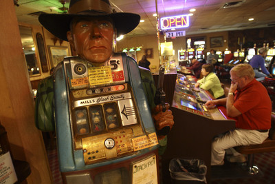 SEARCHLIGHT -- In this gritty old mining town where disintegrating mobile homes dot the hillsides, U.S. Sen. Harry Reid strode into a collectibles store with a fistful of dollars.