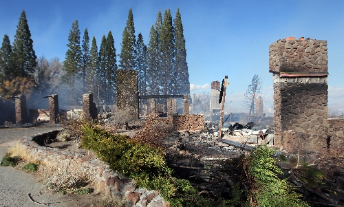 RENO -- The estimated number of homes destroyed in a wind-fueled wildfire more than doubled on Saturday to a total of 32, but Gov. Brian Sandoval said it's a miracle scores more weren't lost.