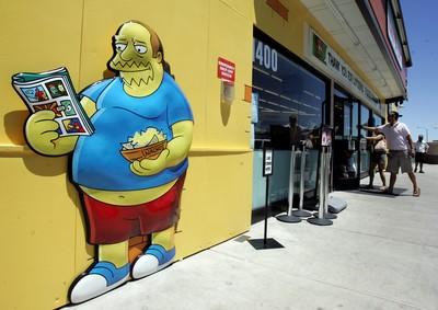 BUSINESS WAS BOOMING ON MONDAY AT THE 7-ELEVEN TURNED KWIK-E-MART. Dozens of fans crowded into the store at Horizon Ridge Parkway and Stephanie Road to stock up on such cartoon treats as Buzz cola and Frosted KrustyOs cereal.