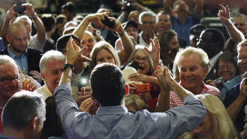 Republican Vice Presidential nominee Paul Ryan speaks at Palo Verde High School in Las Vegas on Aug. 14, 2012.