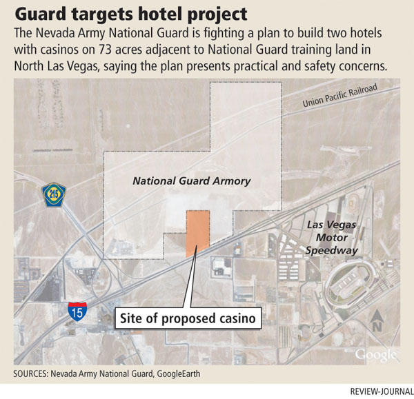 The National Guard also is worried about the increased traffic that would come with a hotel-casino project and the impact of the project's lights on night training for guardsmen.