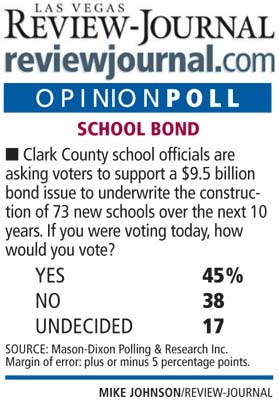 The poll of 405 Clark County residents, commissioned by the Review-Journal and reviewjournal.com, had a margin of error of plus or minus 5 percentage points. The poll numbers have not changed much since the last poll by Mason & Dixon in December.
