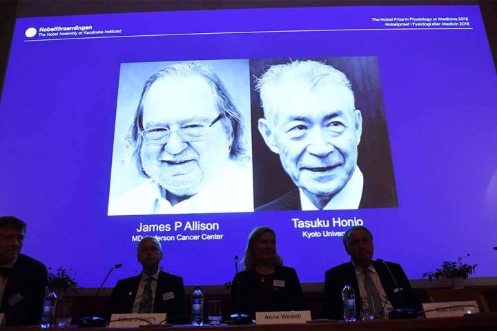 The Nobel Prize in medicine was awarded Monday to two researchers from the United States and Japan for advances in discovering how the body’s immune system can fight off the scourge of cancer.