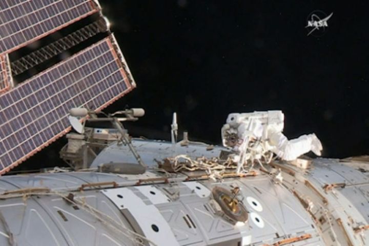 Spacewalking astronauts made urgent repairs at the International Space Station on Tuesday, three days after a critical relay box abruptly failed.